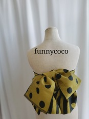 兵児帯 水玉×ストライプ ブラック×イエロー(リバーシブル)